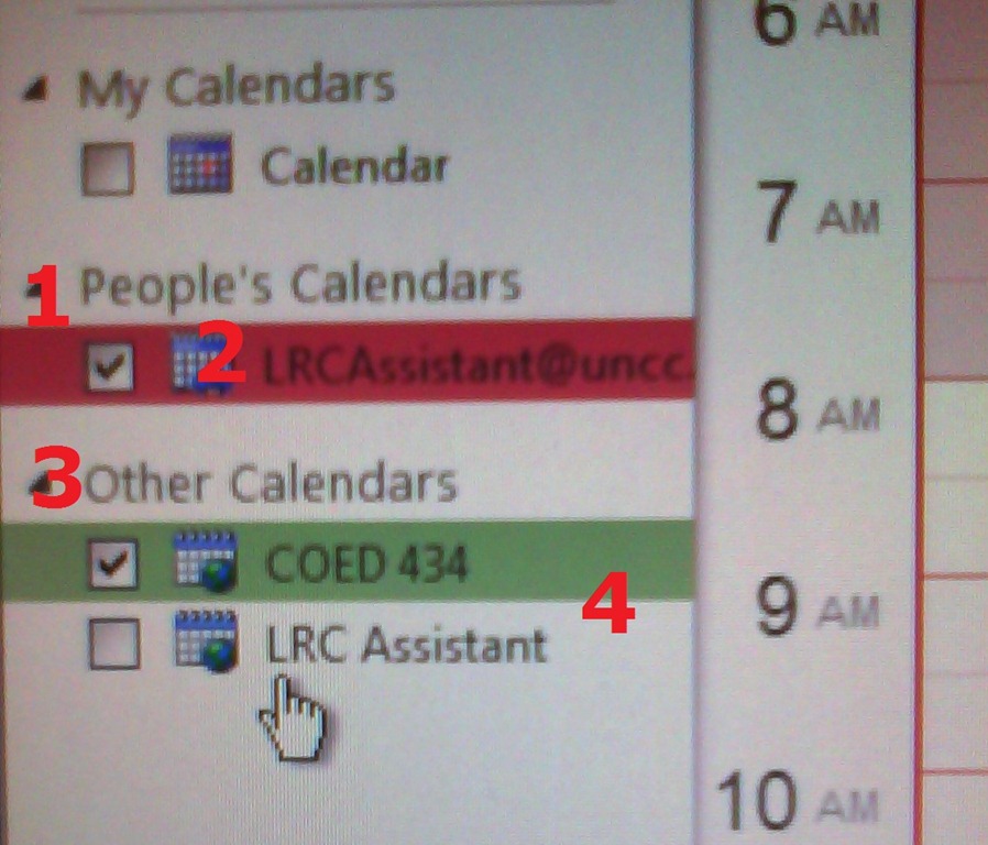 - Shared calendars have as name the email address (2) “@uncc.edu”