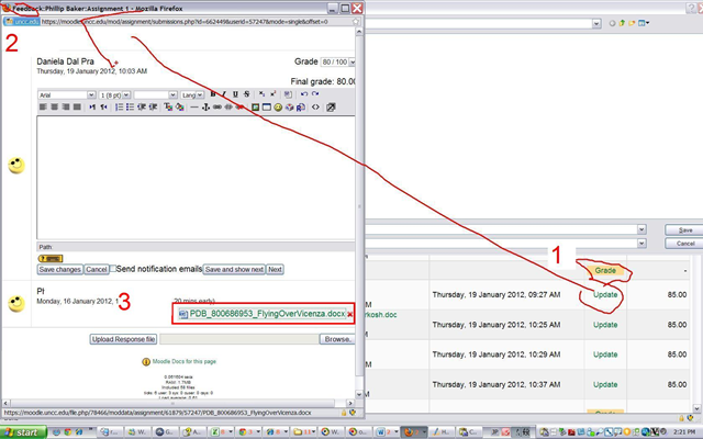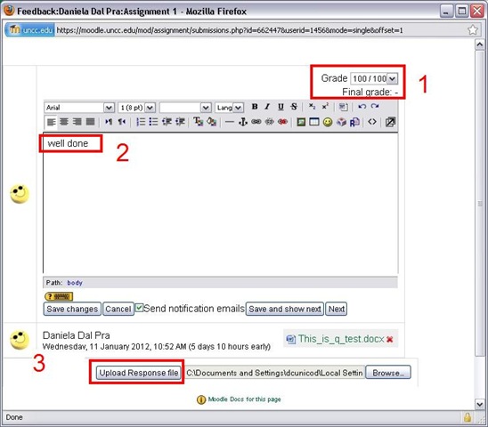 - Provide (1) Grade and (2) comment, then (3) upload the file: