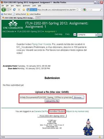 How a student takes a Moodle MS-Word file upload assignment for writing