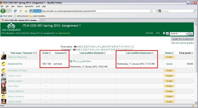How a teacher grades a Moodle MS-Word file upload assignment for writing